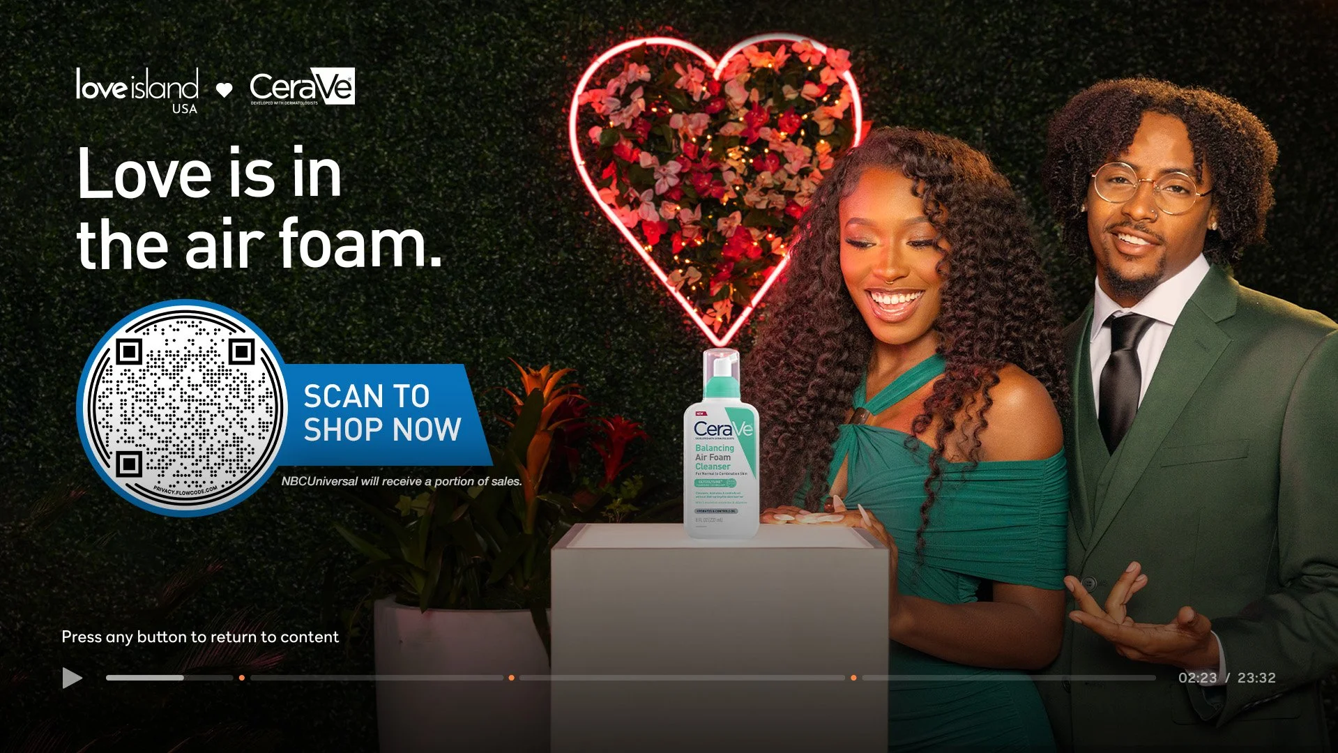 When Love Island Season 7 made its splashy return, the Creative Partnerships team at NBCUniversal teamed up with top sponsors to create bold, made-for-TV ad moments woven right into the drama of the show. Starring the magnetic Season 6 cast — Kordell Beckham, Serena Page, Jana Craig, Leah Kateb, Kaylor Martin, and more — these spots were as high-energy as the villa itself. The campaign was a streaming knockout, racking up over 18.4 billion minutes watched on Peacock.